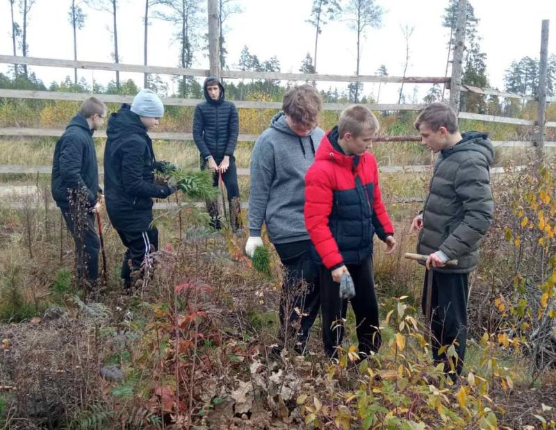 Ребята посадили 600 саженцев ели и 1500 сосны в Центральном лесничестве Осиповичского опытного лесхоза.