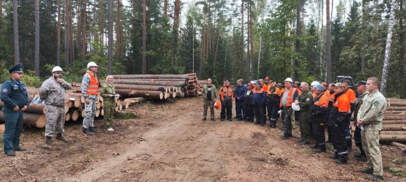 На мероприятии рассматривались вопросы организации работы по безопасному производству лесосечных работ и соблюдение требований безопасности при тушении лесных пожаров.