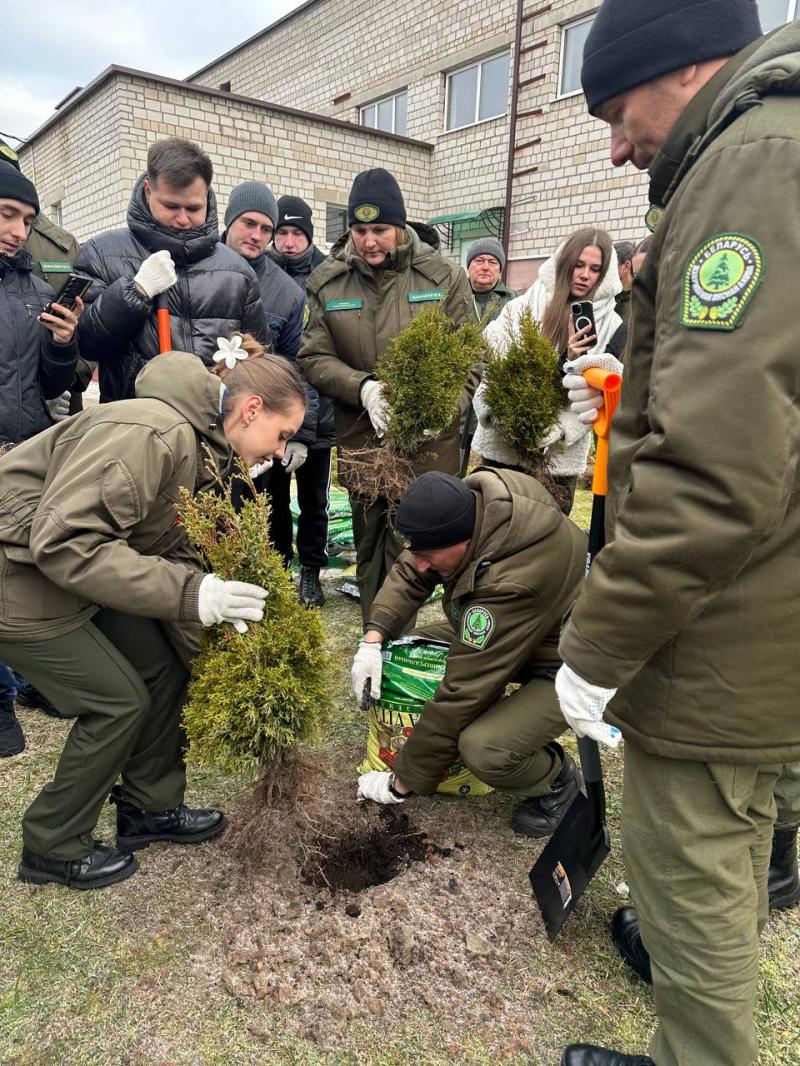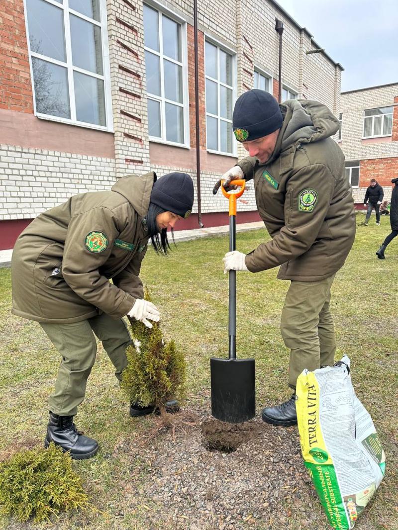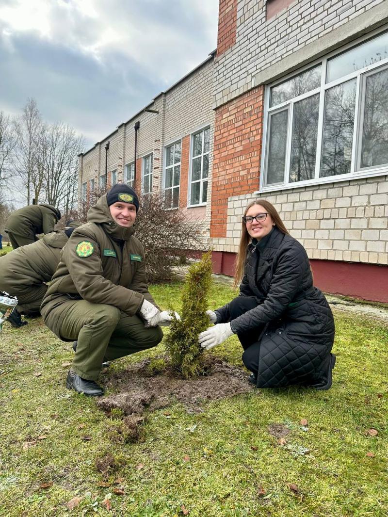 Сегодня территория санатория превратилась в настоящую зеленую стройплощадку. Члены Молодежного Совета Федерации профсоюзов Беларуси прибыли с благородной миссией — заложить аллею из 150 деревьев (колоновидные и шаровидные туи).