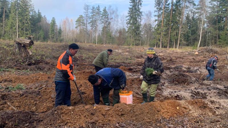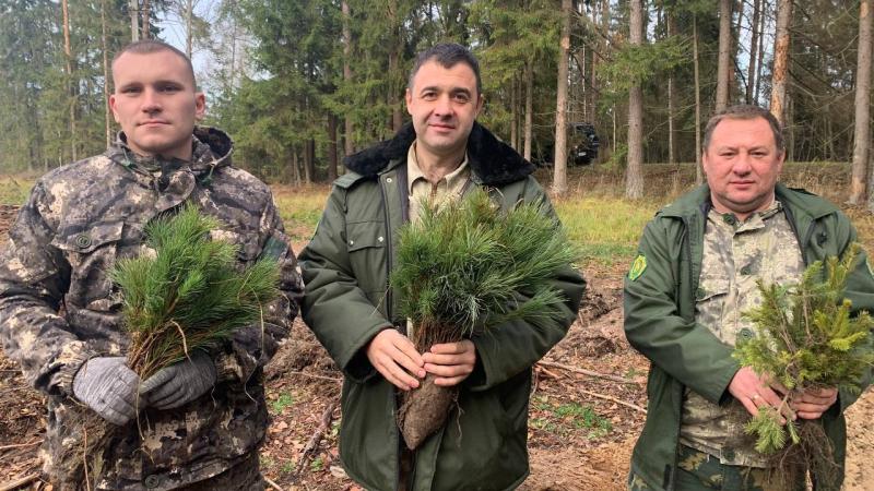 Сегодня, в День Октябрьской революции, в Каменичском лесничестве высажено 2000 сеянцев. Посадка проходила на двух участках на местах усохших насаждений по схеме группового смешения с дубом и елью.