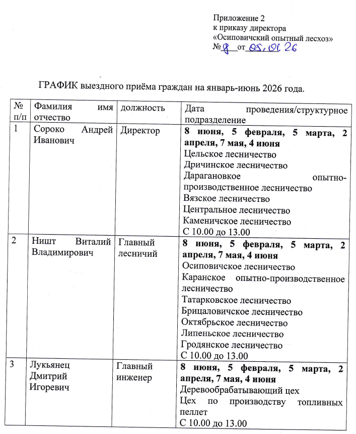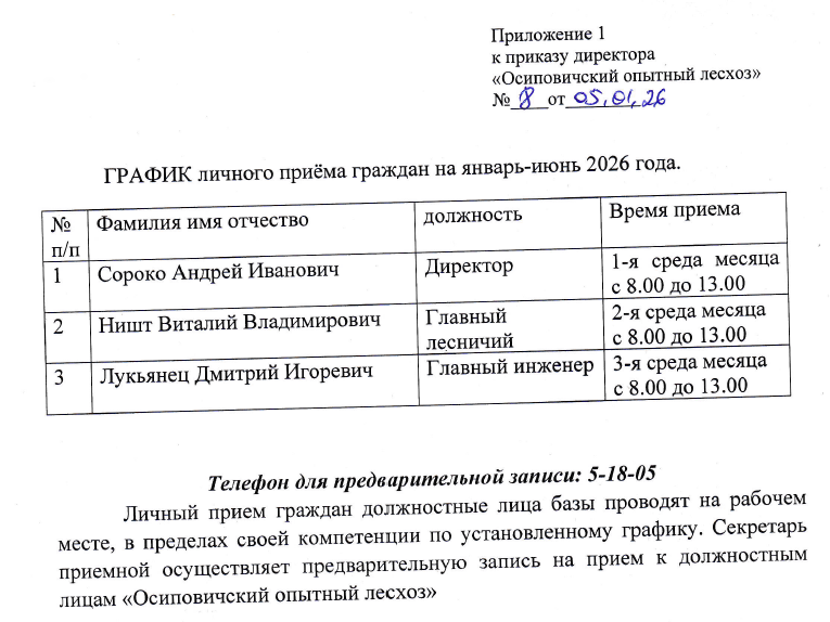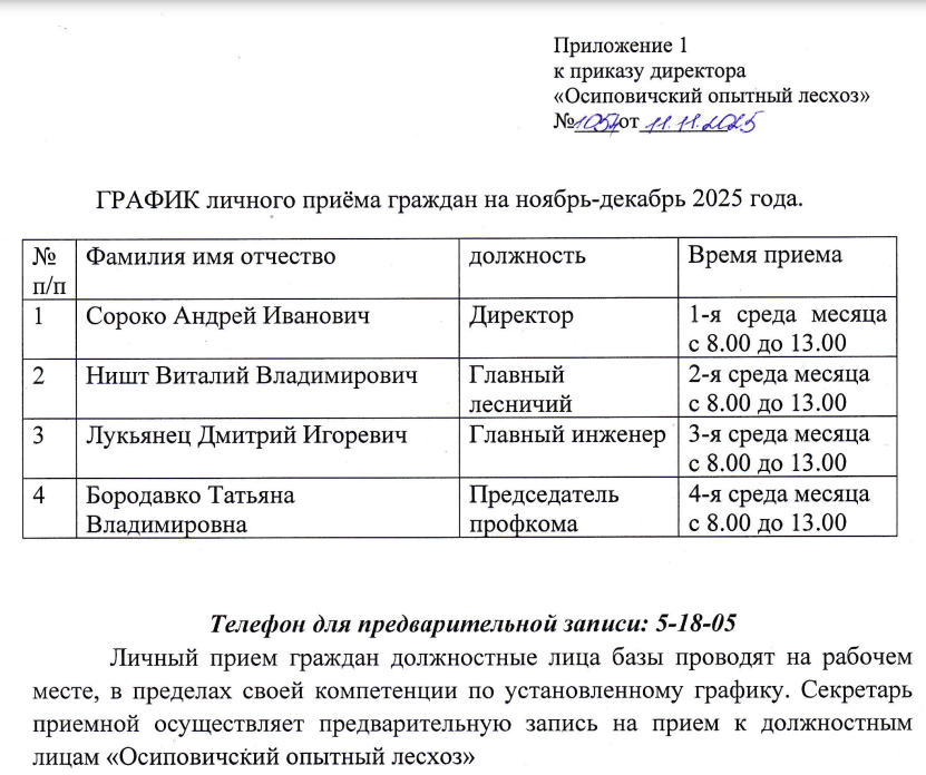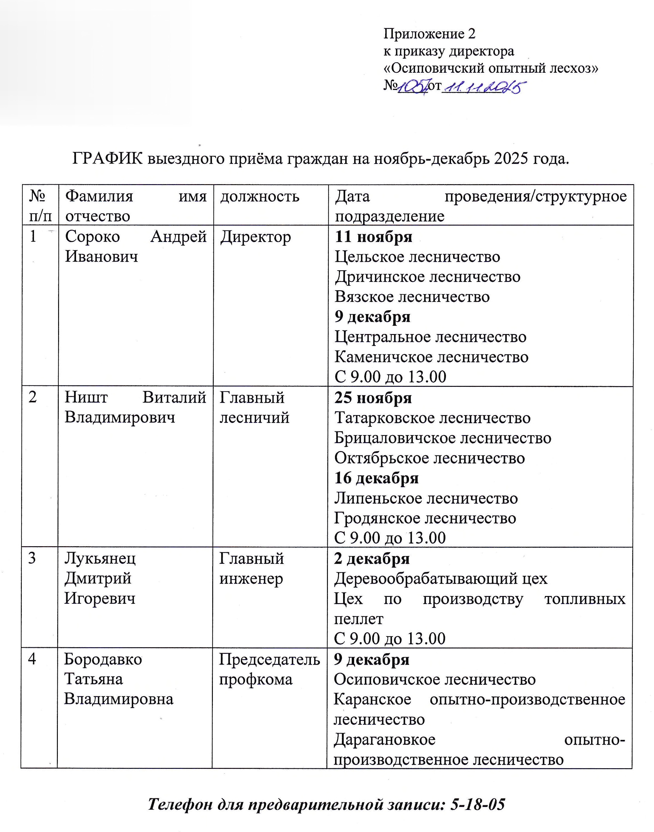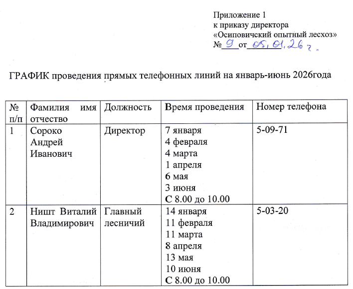 График "прямых телефонных линий", проводимых руководящими работниками аппарата Министерства лесного хозяйства Республики Беларусь